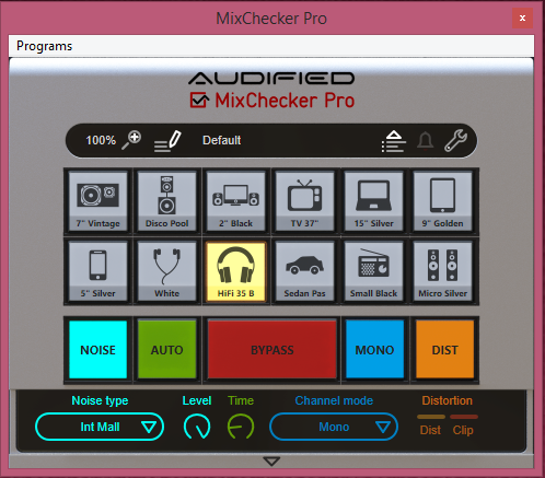 MixChecker — этот плагин создан как помощник в процессе сведения материала, с целью упростить и заметно ускорить процесс. MixChecker экономит ваше драгоценное время. Подключается на мастер шину проекта в качестве последнего элемента цепи и изменяет звучание симулируя звук других устройств, а также компенсирует звучание мониторов с разным размером динамиков. Подобное реализовано уже в некоторых продуктах, для примера KRK ERGO, а также в студийных мониторах Barefoot.