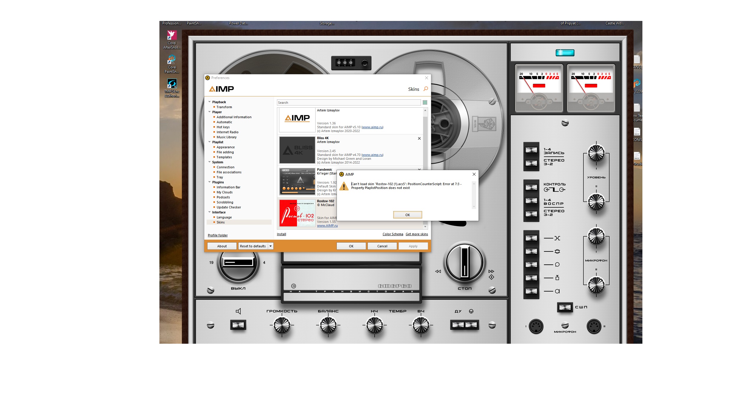 А это окошко выходит, когда пытаюсь вновь запустить АИМП ... Хотя трек играет, но фоном, без визуализации