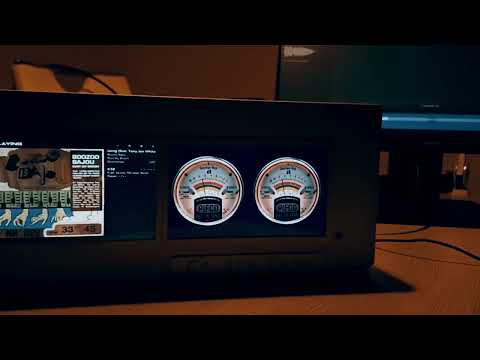 n the new configuration, the left screen displays the album artwork currently being played, while the right screen allows selection among over 30 different VU meter designs or a spectral frequency analyzer.